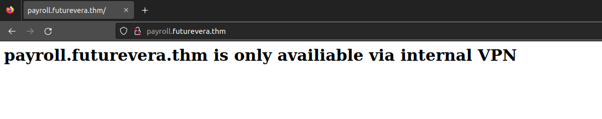 It wasn’t accessible. So next I checked `payroll.futurevera.thm` subdomain.